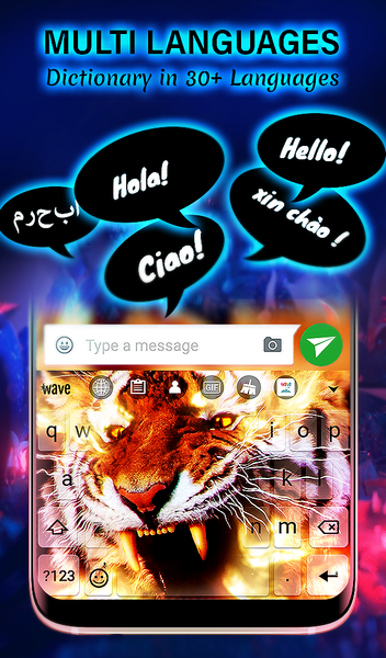 Flame Tiger Animated Keyboard + Live Wallpaper is an awesome personalization app that gives your Android phone a stylish new look. Wave cool wallpapers and keyboards apps help revamp a device in just 3 steps: