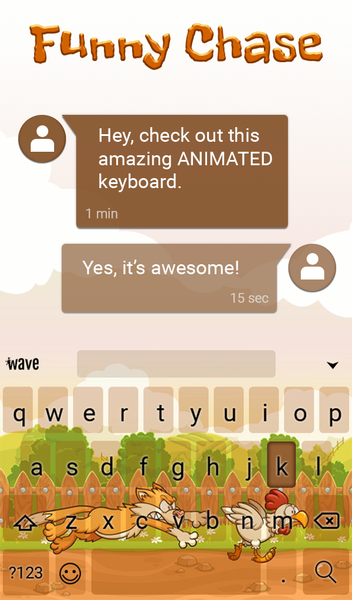 Funny Chase Animated Keyboard + Live Wallpaper is an awesome personalization app that gives your Android phone a stylish new look. With Wave cool wallpapers and keyboards apps, it is easy to revamp a device in just 3 steps: