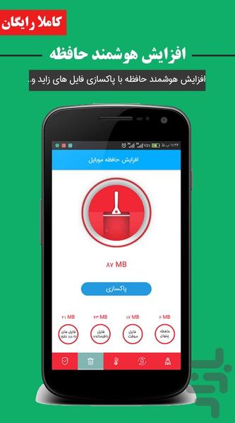 این برنامه با شناسایی و حذف حافظه پنهان برنامه ها , فایل های موقت و فایل های زاید و به درد نخور که حجم بالایی از تلفن رو اشغال کرده اند باعث افزایش حافظه موبایلتون میشه