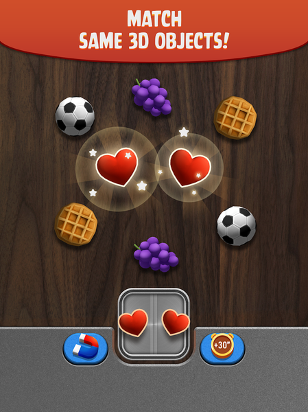 ◈ Just tap to place the 3D objects into the box. Two same objects will be collected.