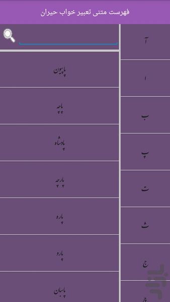 قسمت تعبیر خواب شامل هزاران مورد و موضوع به روایت مفسران بنامی چون امام جعفر صادق، حضرت دانیال، ابن سیرین، ابراهیم کرمانی، جابر مغربی، منوچهر مطیعی تهرانی و ... است که در این قسمت علاوه بر اینکه موضوع ها بر اساس حروف الفبا مرتب شده اند، امکان جستجوی موضوع مورد نظر نیز وجود دارد.