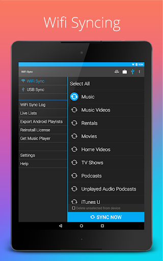 iSyncr syncs your iTunes library from a PC or Mac including: iTunes playlists, music, podcasts, videos (non-DRM) and more.