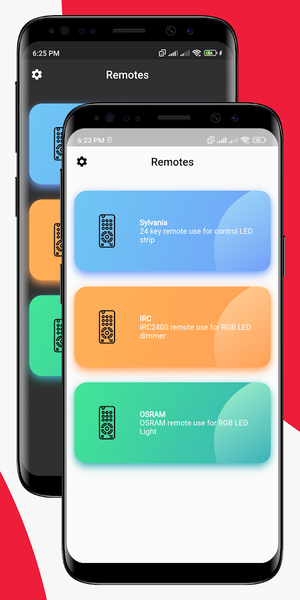 This app work like Sylvania RGB remote and IRC240S RGB remote (24Keys) with automatic dark mode light mode support. Try both remote if you not sure about the IR Sensor.