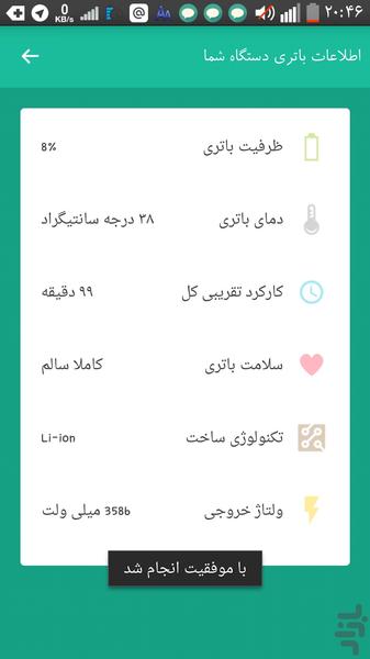 Although the new phones all have made progress but, unfortunately, one of the biggest problems that had charging Battry, is you accept?I saw many people sleep the night under a wall socket!A lot I saw that day, sometimes two or three times battery charge !!!Pull the battery charge, the name of the app is super professional applications with complicated algorithm used in this program, is able to optimize intake you. charge, and several takes a time IncreaseUsing this program you can have full administration on batteries compatible with your phone** The features of this program: fast charge and use the entire capacity of the batteryOptimization and management, taking chargeView Full information such as the battery voltageShowing introducing technologyBattery and battery health response timeFull options - simple and functional settingsAlarm when it's fully chargedTo prevent damage to the batteryWhen finished charging alarmShow date and time of the last optimization doneTricks to avoid battery failure liberation of Rome and the processor speed up phone, display remaining battery capacity display the percentage of time for taking a minute remaining battery temperature (° C)