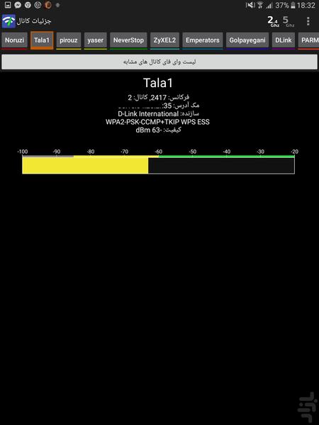 -- امکان نمایش امواج وای فای بصورت نمودار