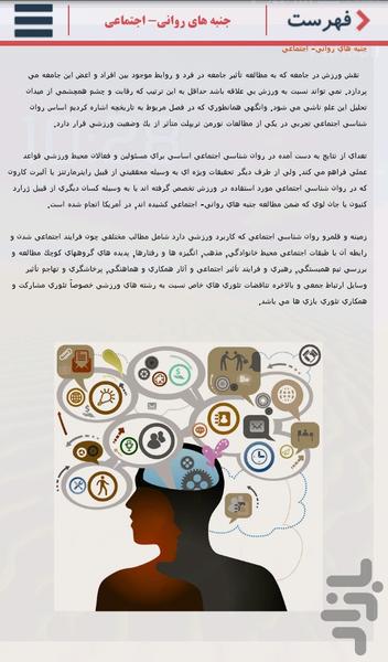 Sport psychology application is one of the educational application that is provided by E-learn Pars center. Upon taking necessary permissions, this center holds educational programs well-adjusted with electronic purposes with more than 250 training courses in the fields of management, computer, agriculture, animal husbandry, fishery, psychology and etc., so hereby we express our readiness to serve all Persian-Language people and compatriots. In this application, you can enjoy 30% of whole educational materials .If required, you can benefit from national and international valid certificates of completion of course by taking the program package through the website: www.elearnpars.org