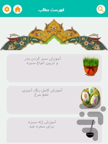 فهرست اصلی اپلیکیشن آموزش تزیین سفره هفت سین عید نوروز :