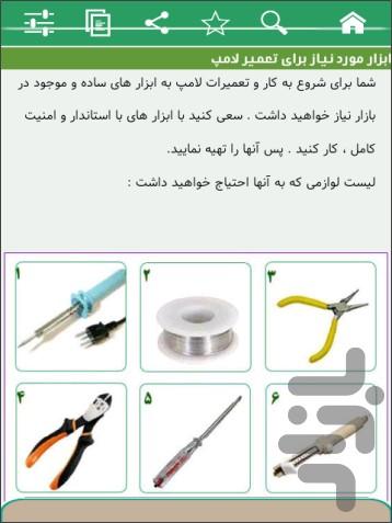 5- شما برای شروع به کار و تعمیرات لامپ به ابزار های ساده و موجود در بازار نیاز خواهید داشت . سعی کنید با ابزار های با استاندار و امنیت کامل ، کار کنید . پس آنها را تهیه نمایید.