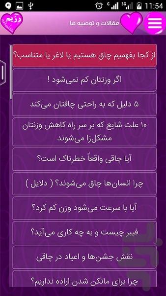 1. مقالات و توصیه ها : شامل بیش از 40 مطلب درباره رژیم و توصیه هایی که باید بدانید.