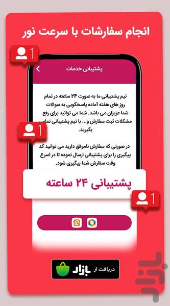 شما می توانید علاوه بر فالوور از امکاناتی مانند ویو (بازدید) و لایک این برنامه نیز استفاده کنید.