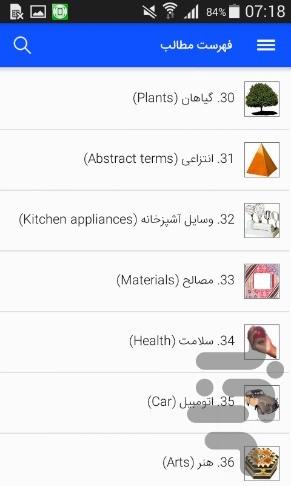 بیش از 2000 لغت ضروری و رایج انگلیسی همراه با ترجمه فارسی و تلفظ و تصویر که در 61 گروه طبقه بندی شده اند و شامل گروه لغات زیر است :