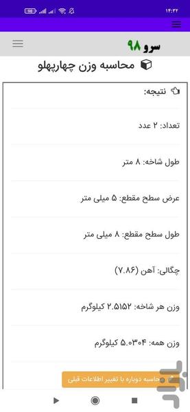 با کمک این نرم افزار می توانید وزن انواع چهارپهلو را محاسبه نموده و با استفاده از آن می توانید باکیفیت و بی کیفیت چهارپهلو و اصلی و تقلبی بودن آن را تشخیص دهید.
