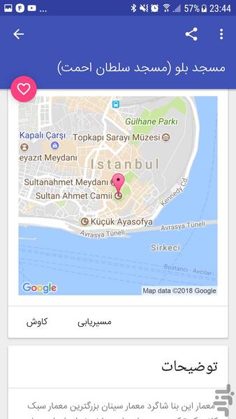 نزدیکترین مکان های دیدنی و .. با توضیحات فارسی در خدمت شماست. حتی بدون اینترنت هم این برنامه کار نیز میکند فقط تصاویر و مسیریابی به اینترنت نیاز دارد.