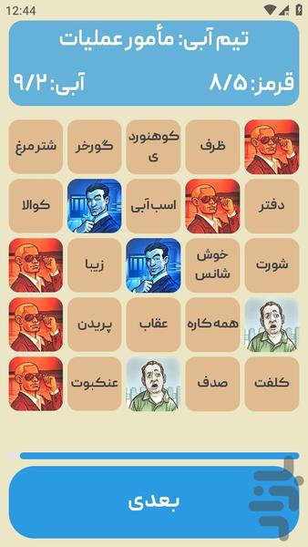 • هر تیم یک رئیس عملیات دارد که با دادن سرنخهای تککلمهای و عددی (مثلاً "حیوان، ۲") سعی میکند اعضای تیمش را به سمت کلمات مرتبط روی میز راهنمایی کند.