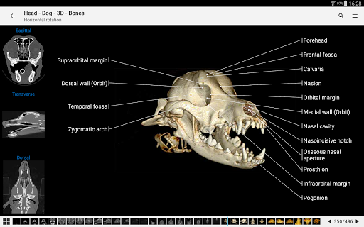 vet-Anatomy focuses entirely on animal anatomy. Designed in partnership with Dr. Susanne AEB Boroffka, ECVDI graduate, PhD, vet-Anatomy includes interactive and detailed radiological anatomy modules containing veterinary medical images from X-rays, CT and MRI. It covers multiple species: dogs, cats, horses, cattle and mice. The images are labeled in 12 languages, including the Latin Nomina Anatomica Veterinaria.