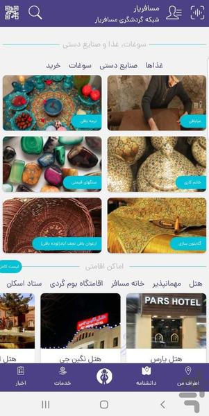 3- امکان اسکن تابلوها و بنرهای حاوی بارکد های راهنمایی نصب شده در ایام نوروز در اماکن مختلف گردشگری، اقامتگاه، خیابان ها، مجتمع های بین راهی در جاده ها و... در سطح استان اصفهان و دریافت محتوای درج شده در بالای آن(به طور مثال اگر در محلی نوشته شده بود: "لیست اماکن اقامتی" و زیر آن یک بارکد بود، در صورت اسکن آن بارکد، به صفحه لیست اماکن اقامتی در نرم افزار مسافریار منتقل خواهید شد)