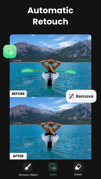 One tap to remove unwanted objects naturally — logo, people, text, blemish, sticker, watermark… Remove Objects - AI Retouch is your ultimate choice definitely. An unwanted object, no matter how tiny, may completely spoil your photo. But with this super easy & time-saving photo eraser, all photos will be as clean as you expect effortlessly — now enhanced with pixel-level cut to ensure perfect edges and seamless blends.