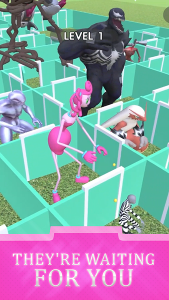 Move between rooms with swipes. Collect chests to level up. Avoid rooms with opponents older than your level, otherwise you will lose.